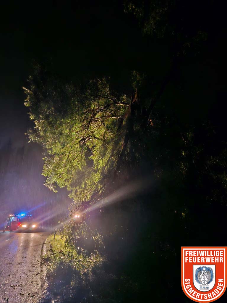 Zusammen mit vielen anderen Wehren aus dem Landkreis Dachau wurden auch wir aufgrund der Unwetterlage alarmiert. Zunächst galt es, einen umgestürzten Baum auf der DAH 10 (Sigmertshausen – Großinzemoos) zu entfernen. Neben der Sicherung der Ortsverbindung wurde der Baum abgetragen.